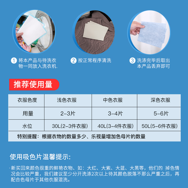 Clothing color-absorbing paper Anti-string color laundry sheet Anti-dyeing to prevent adsorption of color tablets Household color masterbatch color separation family clothing