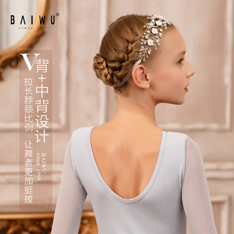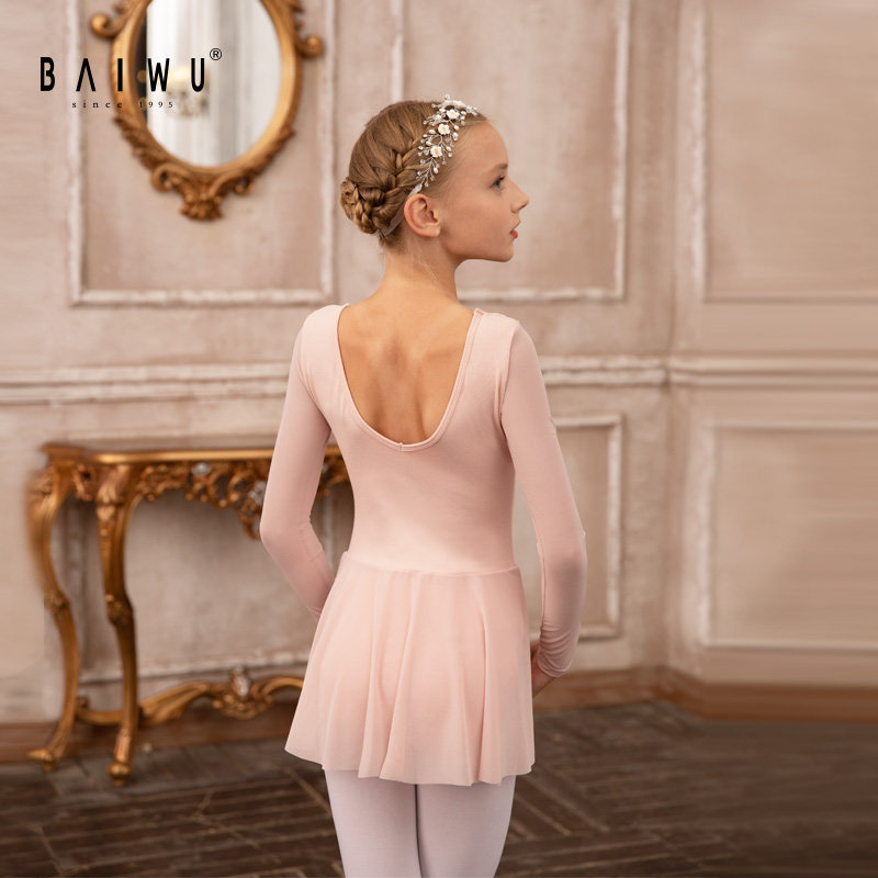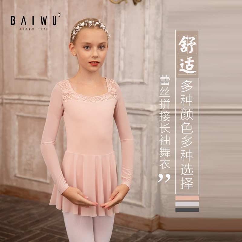 Kashiwaya Children's Dance Skirt Gymnastics Costume Women's Long Sleeve Ballet Exercise Dress Mesh Shaped Bodywork Suit 119242308
