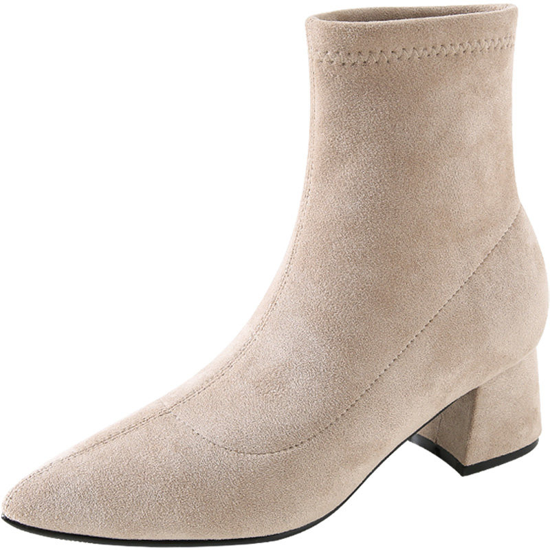 Broken code clearance thick heel ankle boots women's 2022 new mid-heel boots short tube square toe net red suede skinny boots
