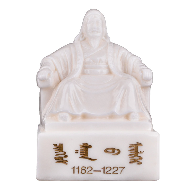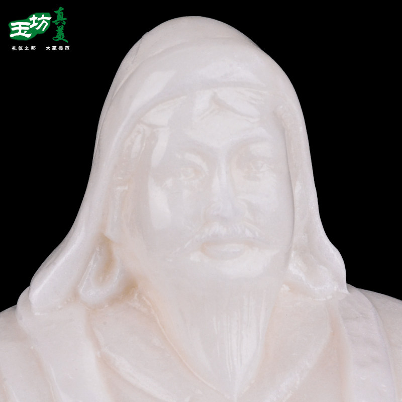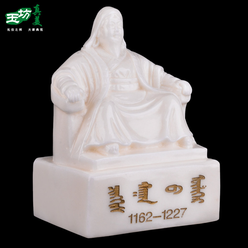 Hand-carved Genghis Khan sculpture figure celebrity natural jade steppe Mongolian soldier statue ornament