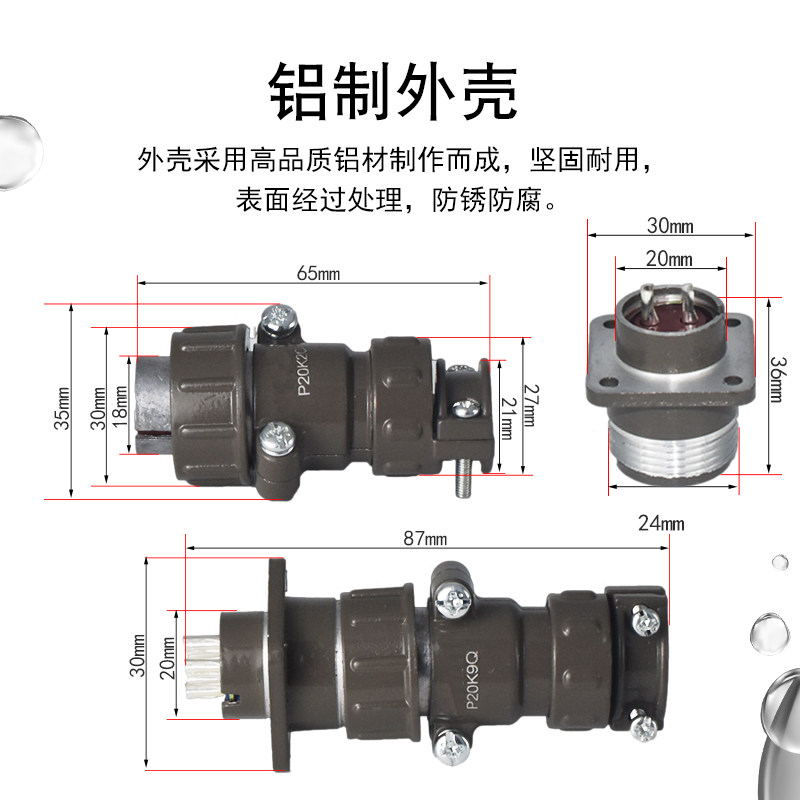 Air Plug socket P20-2 Core 3 Core 4 Core 5 Core 7 Core Large Current Round Connector Butt Open Pore 20mm