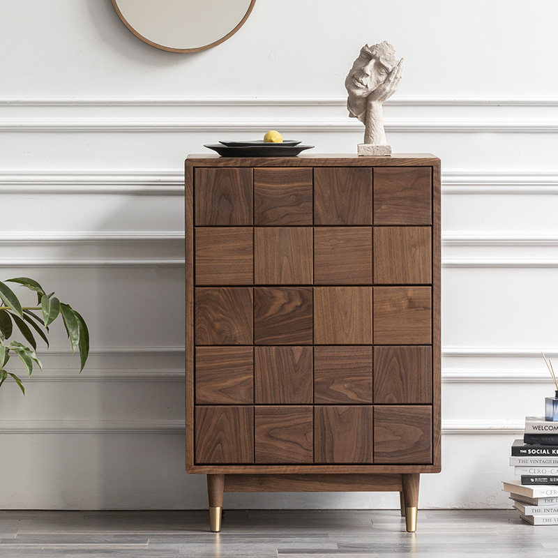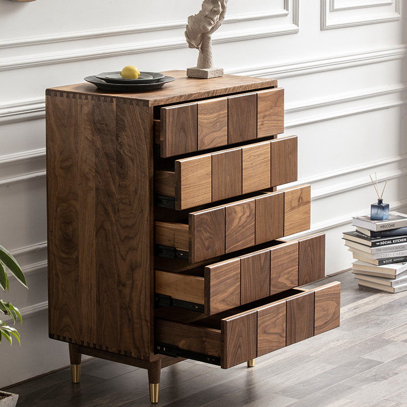 Log five-drawer cabinet bedroom black walnut solid wood simple modern light luxury living room against the wall home cabinet drawer storage