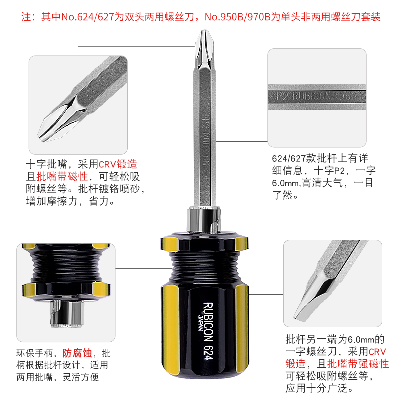 Japan RUBICON Robin Hood screwdriver 624627 Both ends with batch knife 950 970B screwdriver screw opener suit