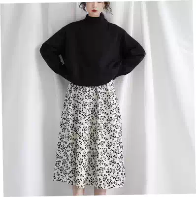 Fine points, stars, sky domes, retro literature and art with sweater skirt, flocking floral high-waisted corduroy umbrella skirt