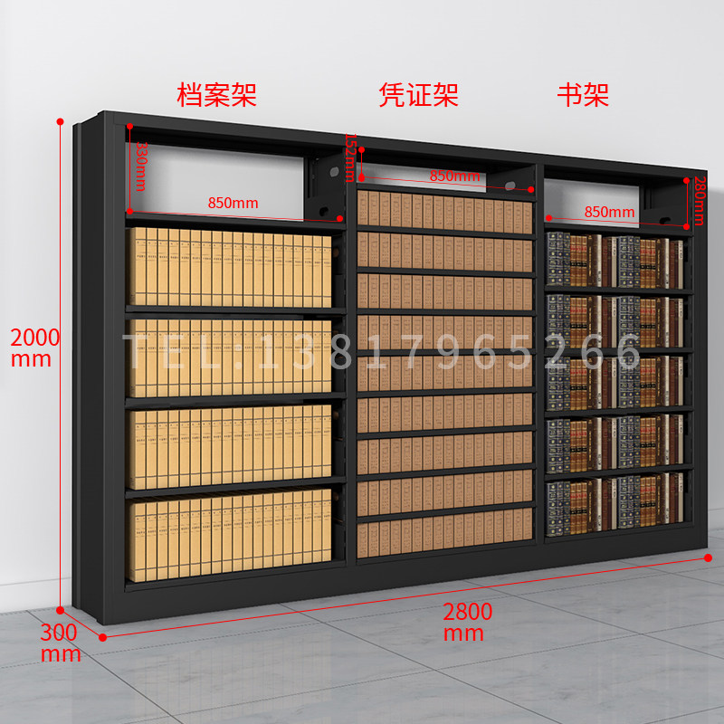 Steel bookshelf file rack voucher rack library bookshelf document information rack black display shelf intensive cabinet
