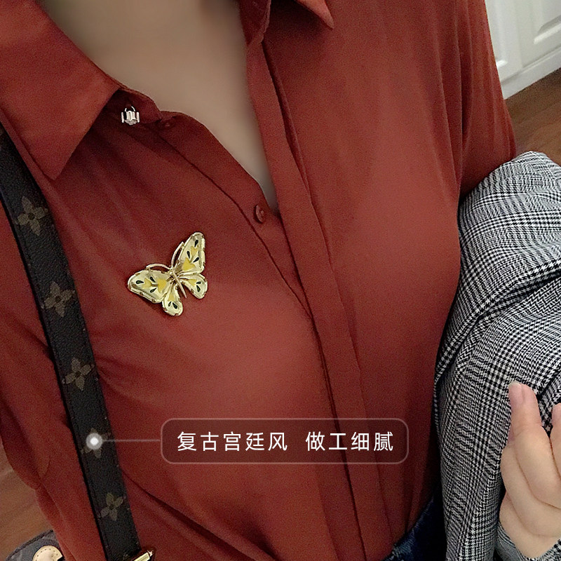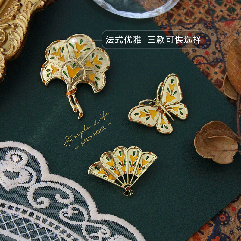 Retro enamel butterfly brooch girl pin buckle ginkgo leaf coat suit clothes sweater decoration high-end all-match