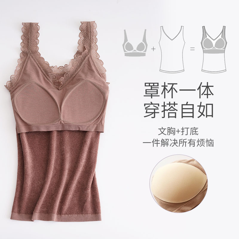 Glint Warm Vest Lady Harnesses Winter Thickening With Chest Cushion Integral Lace Bottom Inner Wearing Cotton No-Mark Underwear