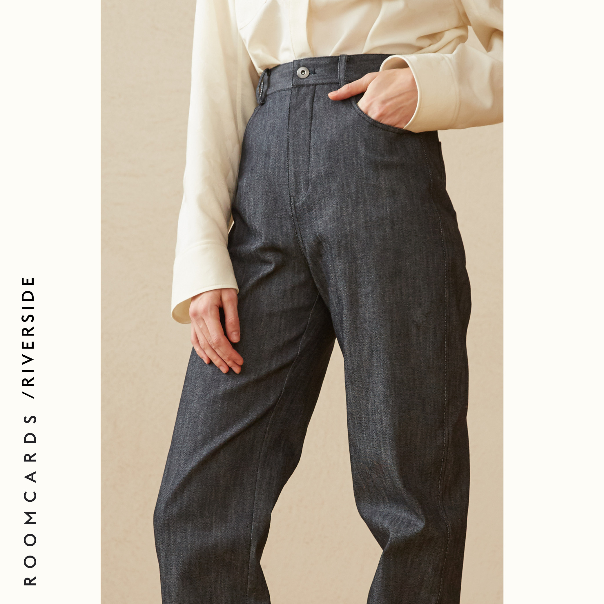 Roomcards coloured line is a wide and thin straight tube casual pants female with high waist environmental jeans spring