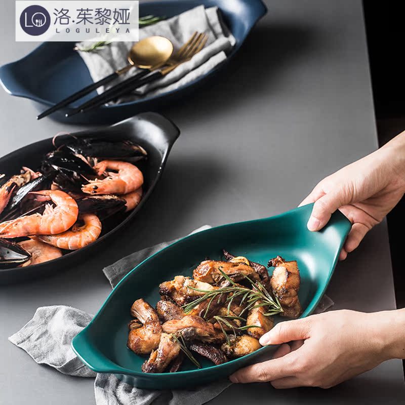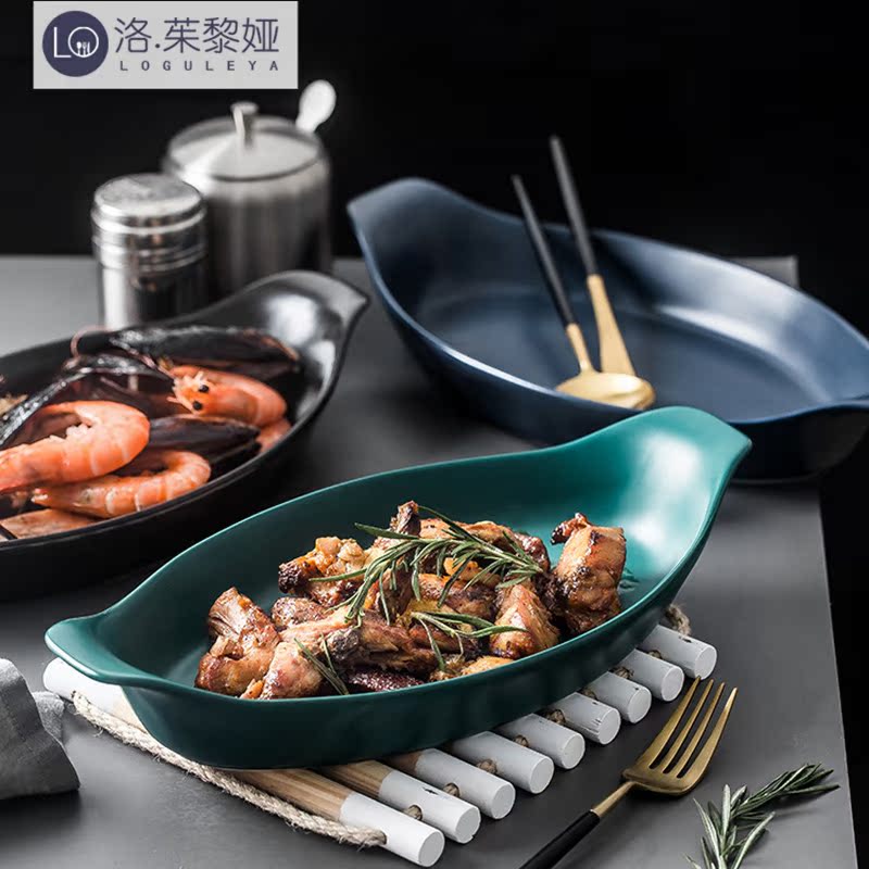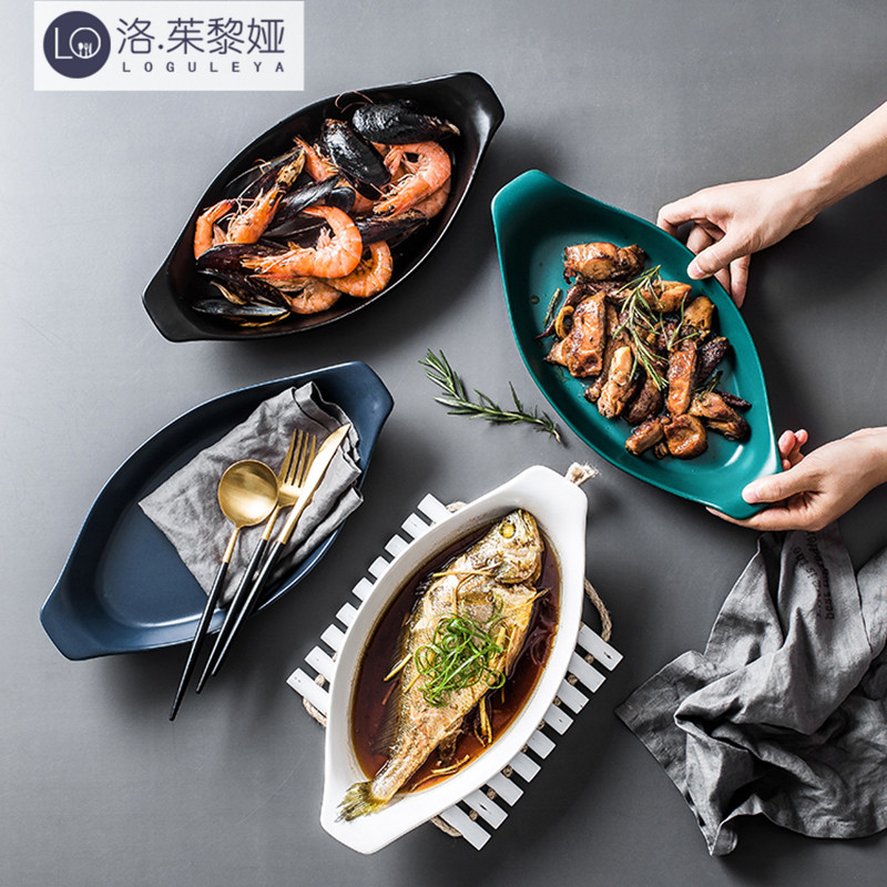 LO GULEYA fish dishes Home Steamed Fish Dishes Rectangular Nordic Creative Fish Dish Cutlery Plate Ceramics