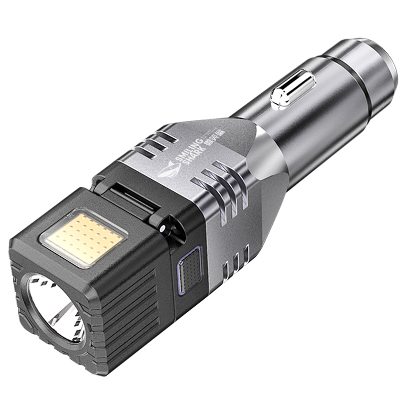 Small flashlight Car strong light charging Durable self-defense emergency Portable magnetic car multi-function safety hammer