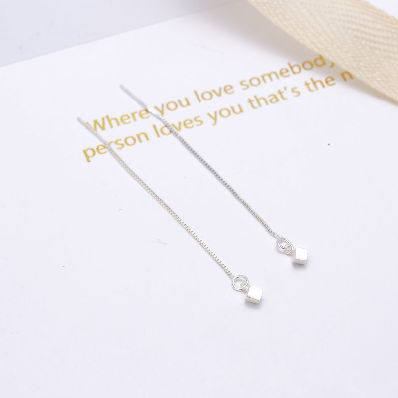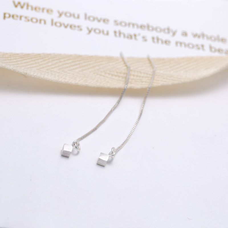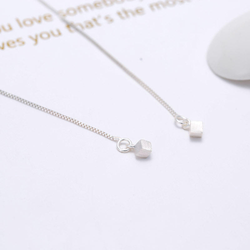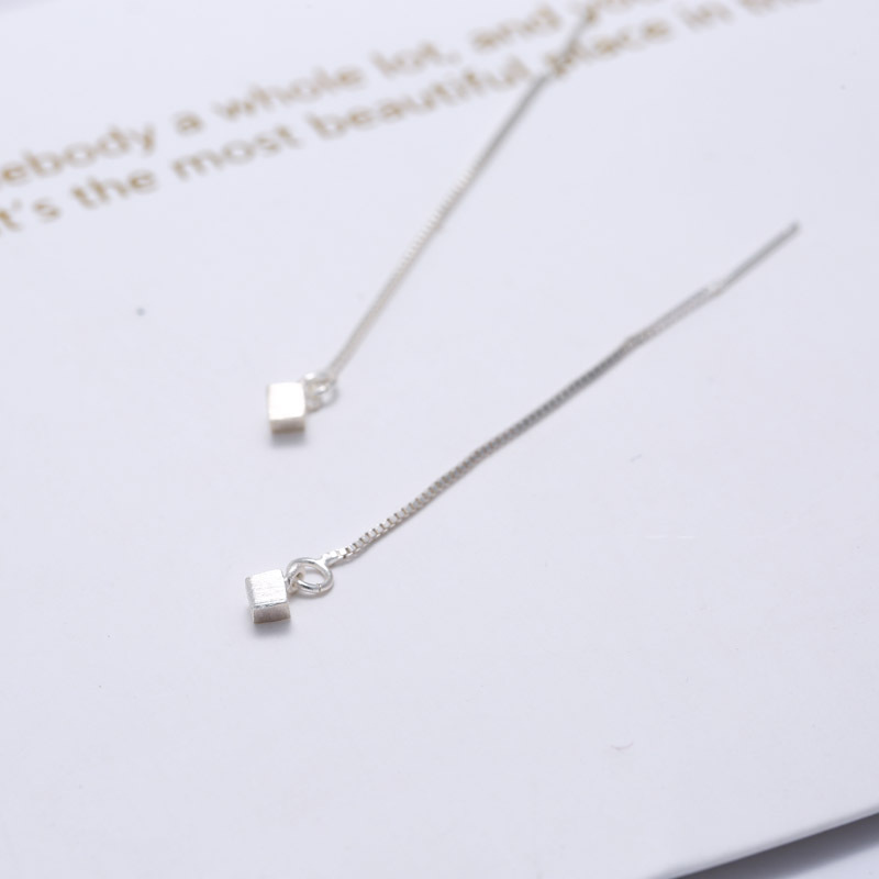 925 Pure Silver Wire Drawing Block Ear Necklace Long Version Korea Brief Temperament Classic Fashion Geometric Square Flow Suearrings