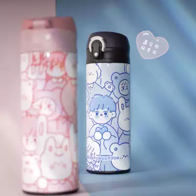 Yuan Ye Fun life home original cute couple stainless steel thermos bouncing cover gift cup