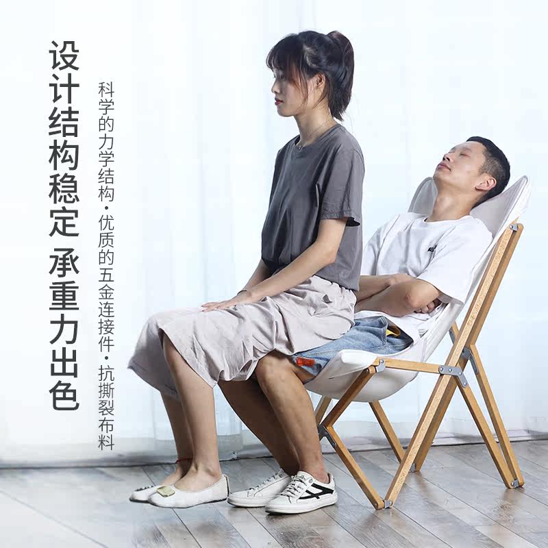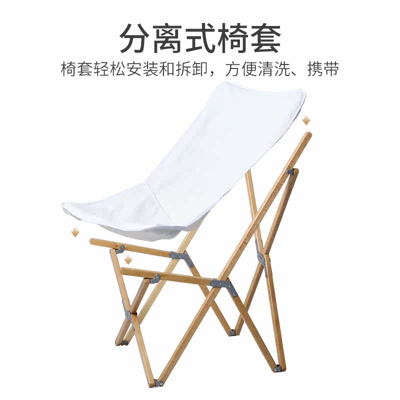 Solid wood outdoor folding chair Canvas portable fishing leisure camping recliner Lunch break single beach butterfly chair