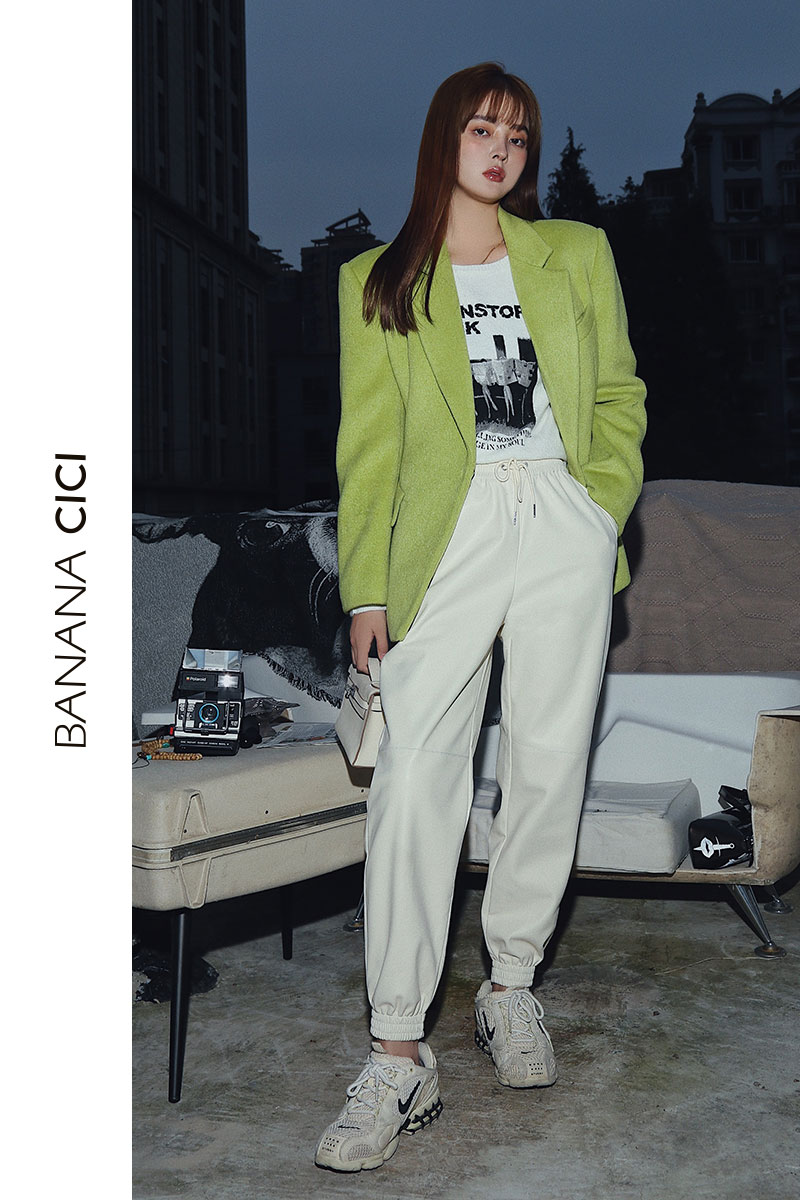 BANANA CICI2020 winter new high-waisted textured PU leather split line harness foot leather pants women's casual pants
