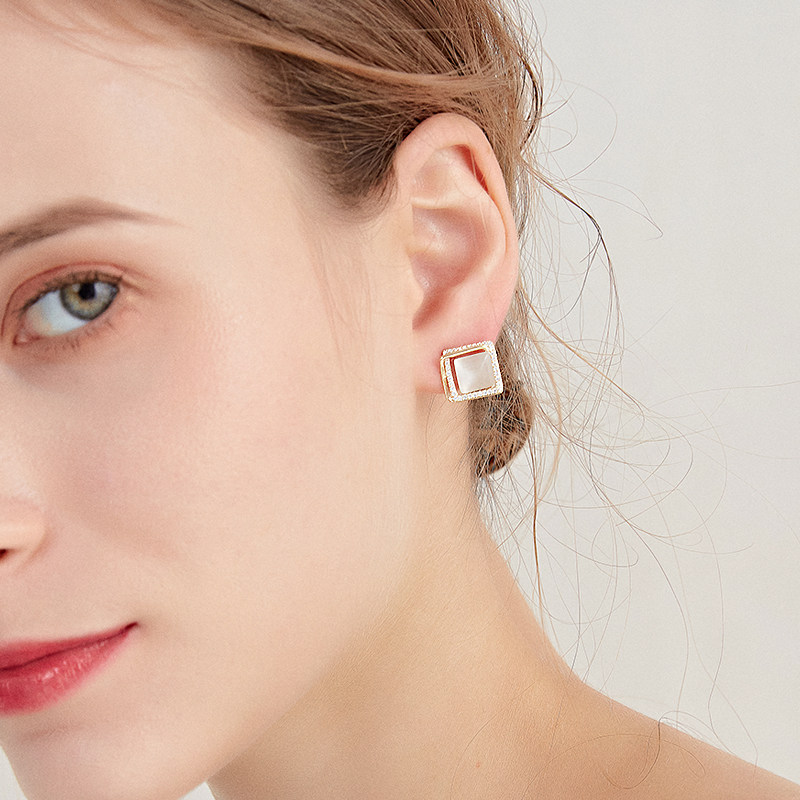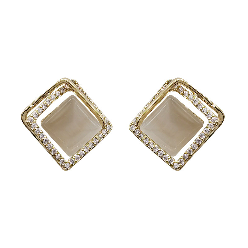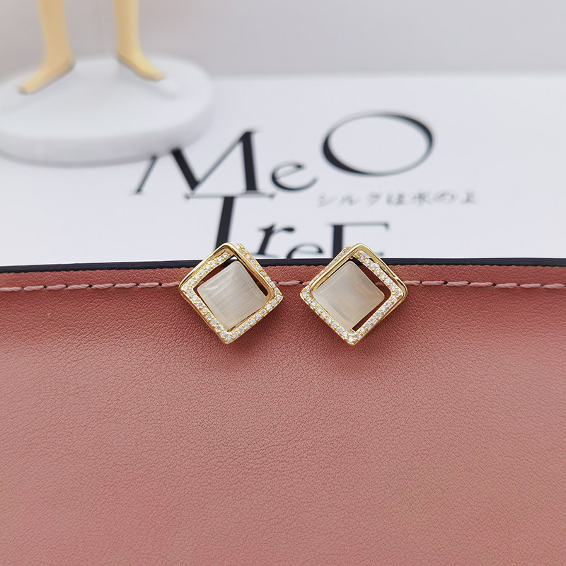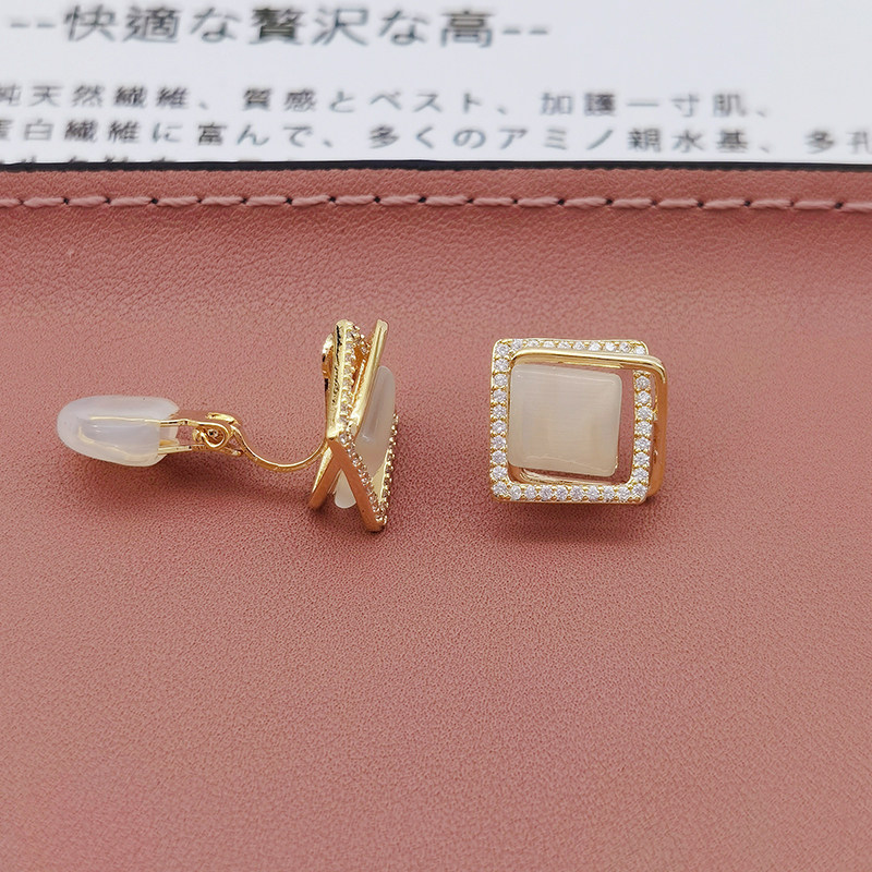 South Korea's high-end cat's eye diamond-shaped temperament lady's ear acupuncture female 925 sterling silver no ear hole ear clip painless hypoallergenic