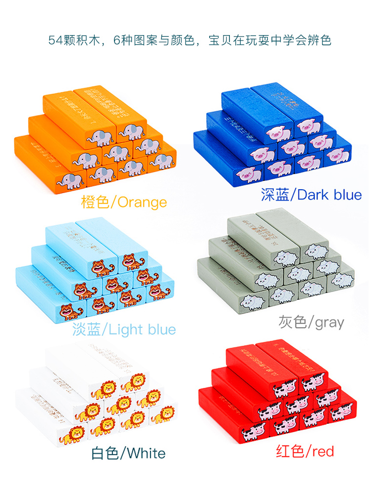 63 pieces of color Jenga music (without text) 54 pieces of animal pumping music (without text) K type 63 pieces of log numbers (with text) D type 63 pieces of log numbers (without text)