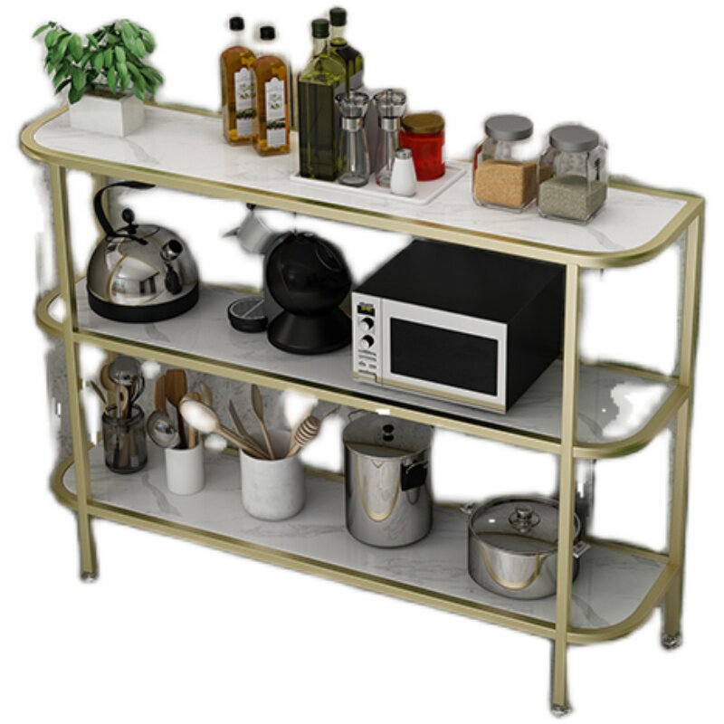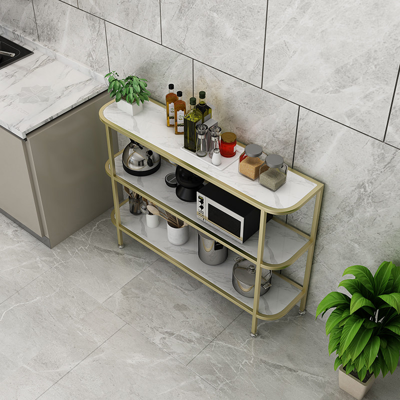 Nordic marble kitchen shelf floor-to-ceiling multi-layer storage small apartment overall cabinet oven dining cabinet microwave oven rack