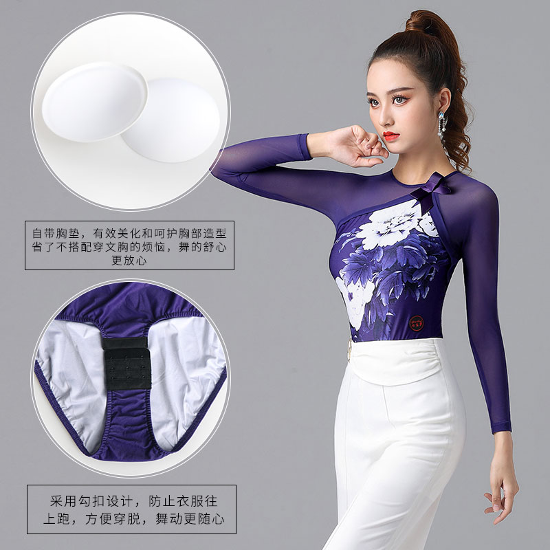 Dan Bo Luo Waltz top women's dance clothes new fashion ladies national standard dance practice clothes modern dance elastic shirt