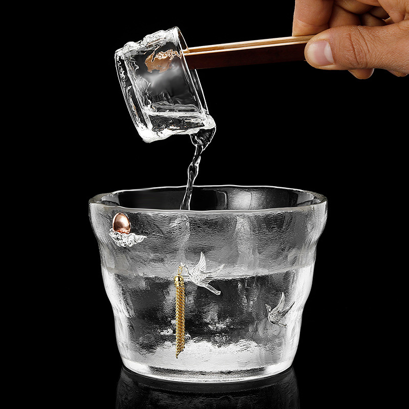 Longshantang pure hand-made glass tea washing tea set accessories washing tea bowl tea ceremony zero with water bowl washing Japanese Zen