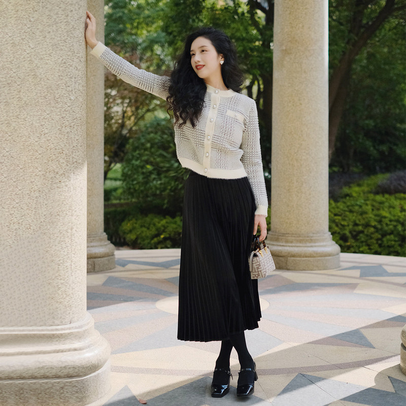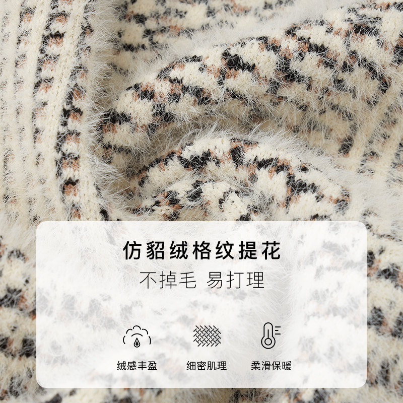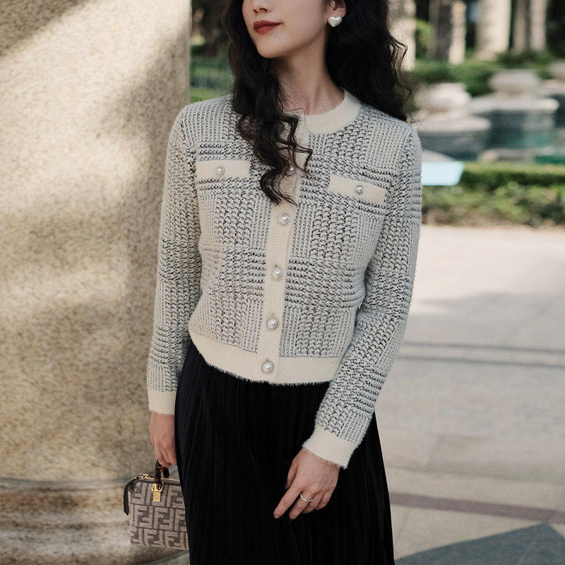 naivee Naweiqiu French retro small fragrance style pattern jacquard imitation mink velvet sweater cardigan short coat small man