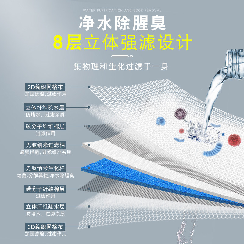 (8 layers of filtered non-adhesive cotton) 50*11cm 1 piece★Send nitrifying bacteria