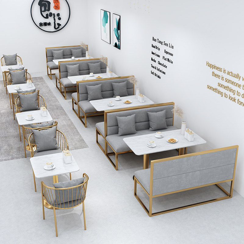 Against the wall card seat sofa milk tea shop coffee shop table and chair combination dining room dessert shop net red style wrought iron sofa customization