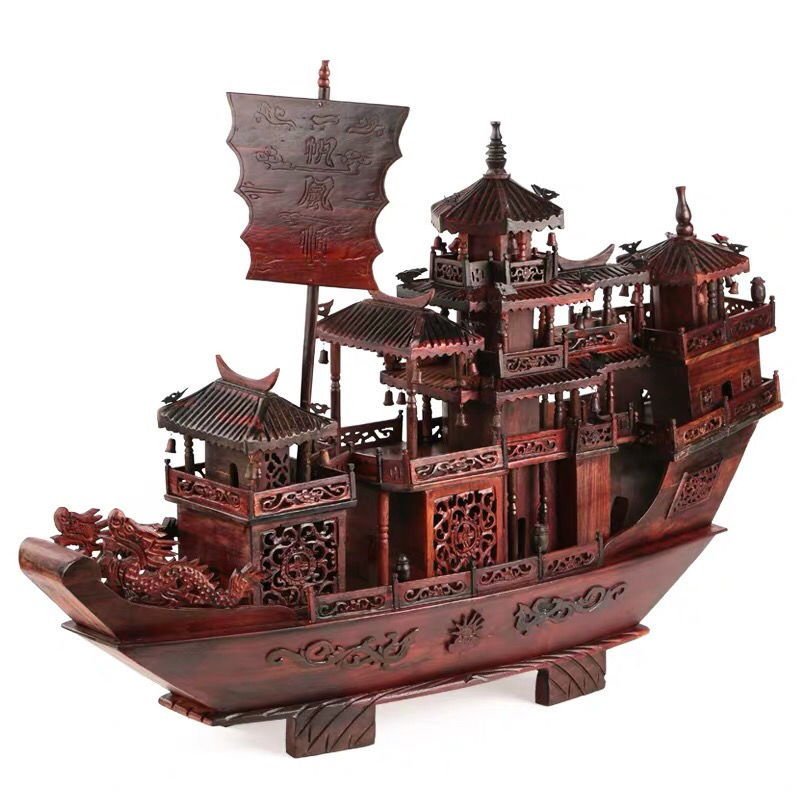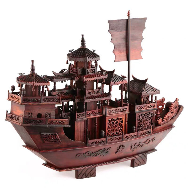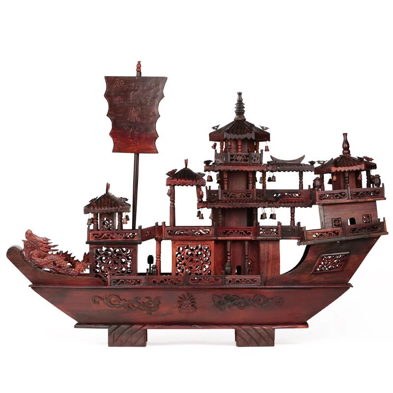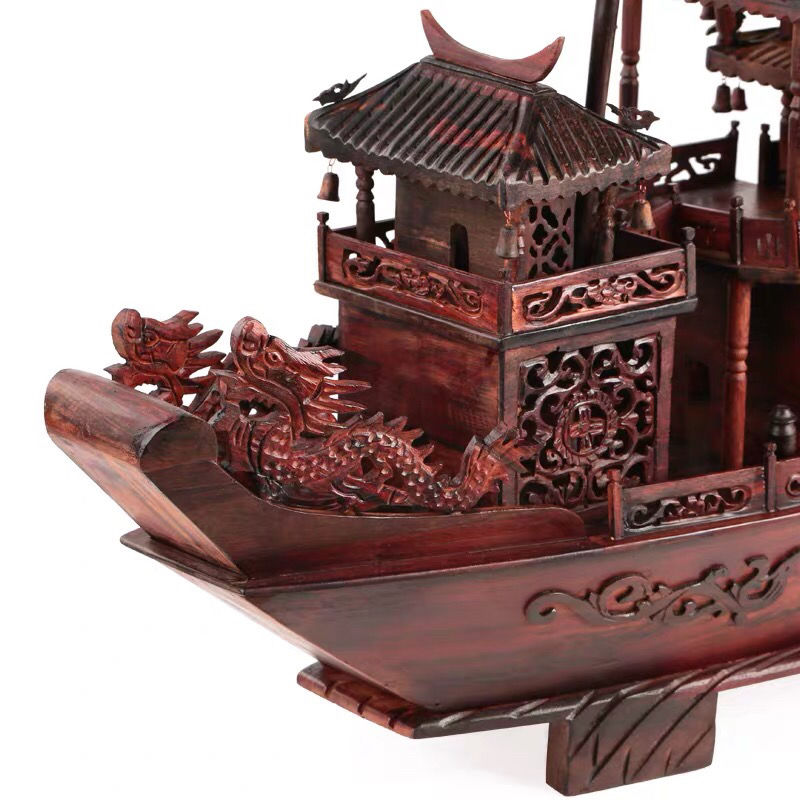 A sailing wind sailing boat fitted with red wooden carving dragon boat large red acid branch model Jomigra gift opening gift