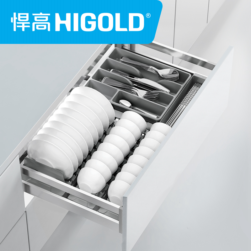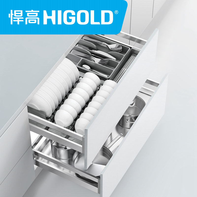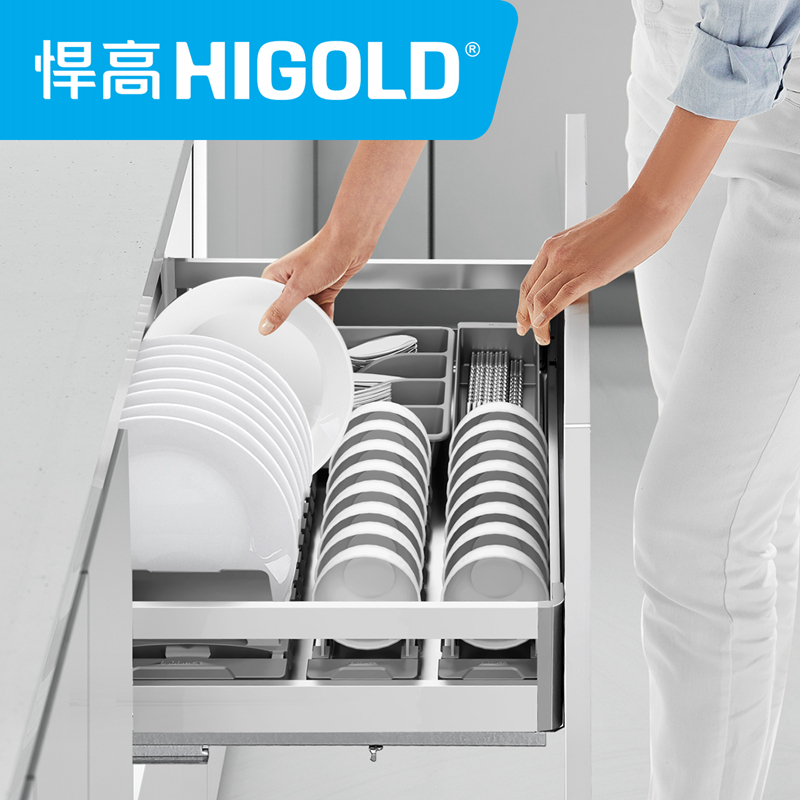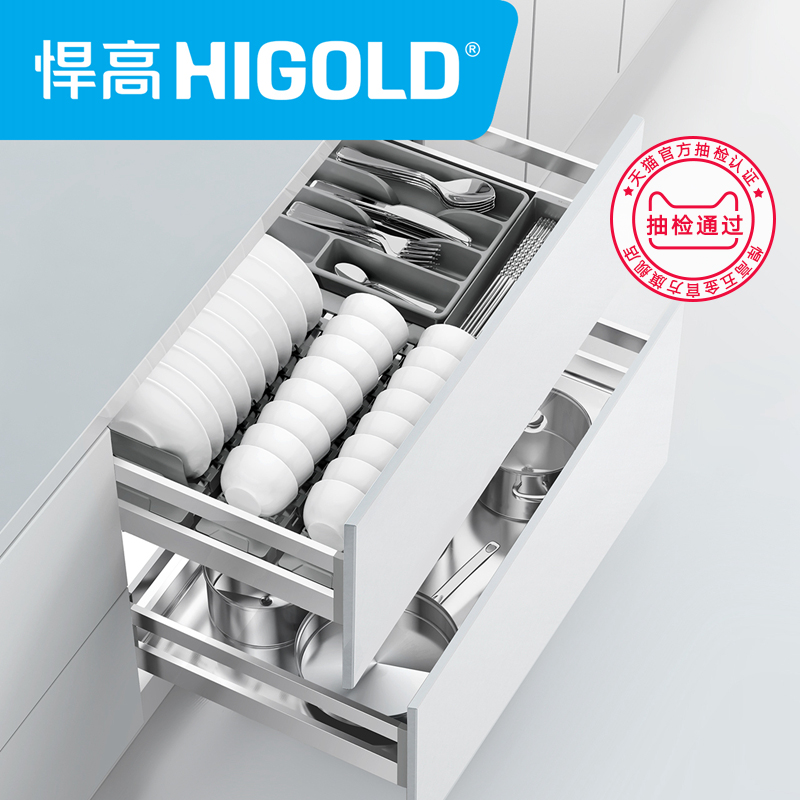 HIGOLD Humco Kitchen Cabinet Pull Basket Drawer Type 304 Stainless Steel Seasoning Basket Bowl Rack Double Deck Bowl Basket Storage