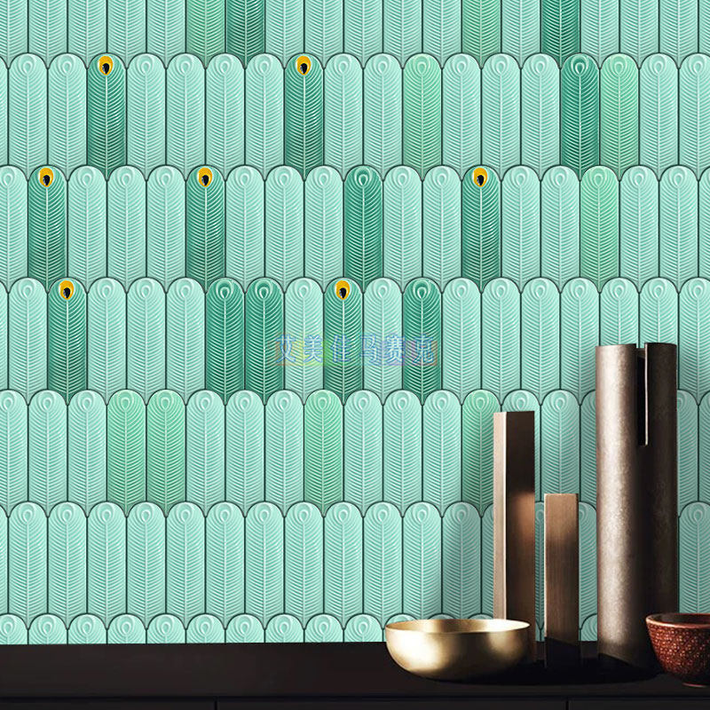 Nordic Phantom Plume Tile Fish Scale Retro Antique Kilo Kiln Varnishes Net Red Ink Green Makeup Room Kitchen Bathroom Handmade Brick