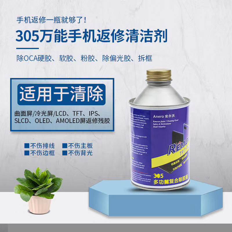 305 universal mobile phone back repair cleaning agent except glue solution for removing OCA glue polarized rubber curved surface cold light screen