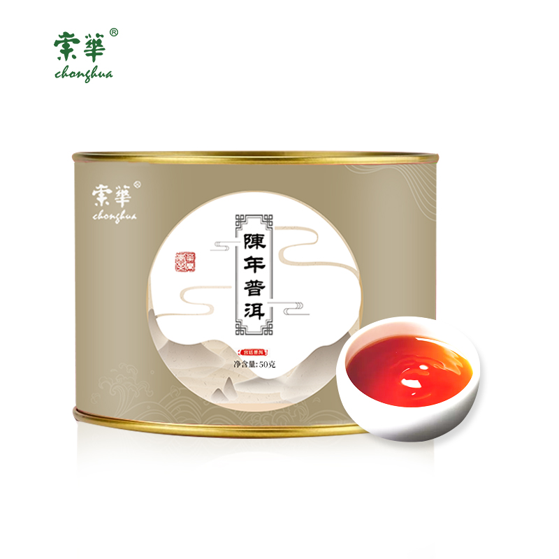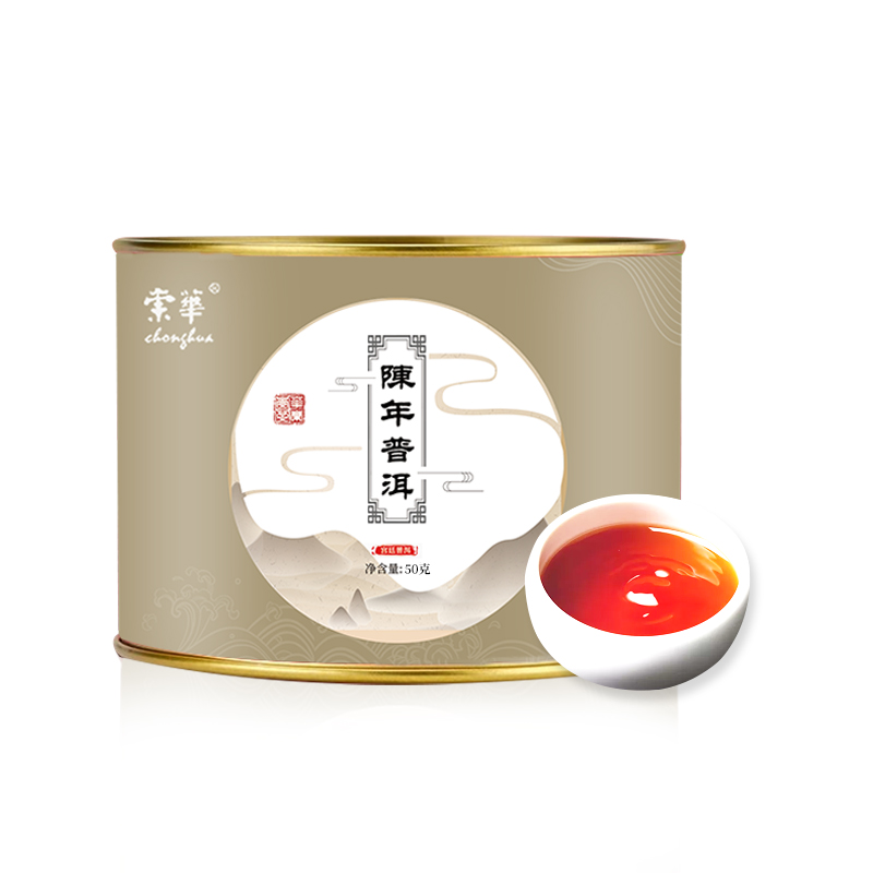 Pu-erh tea cooked tea Yunnan's Burhai Chen Year ancient tree palace Pu'er tea ripe tea Chen fragrant type loose tea small canned 50g