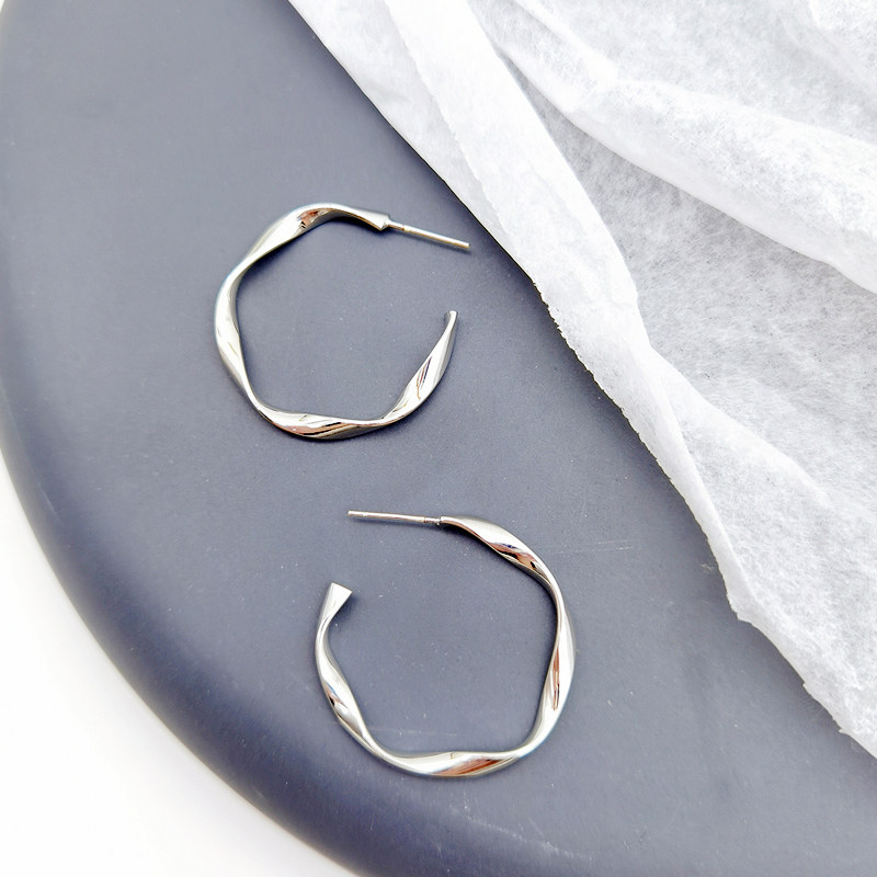 South Korea's exaggerated temperament twisted big circle 925 sterling silver ear acupuncture women's painless U-shaped ear clips can be adjusted without pierced earrings