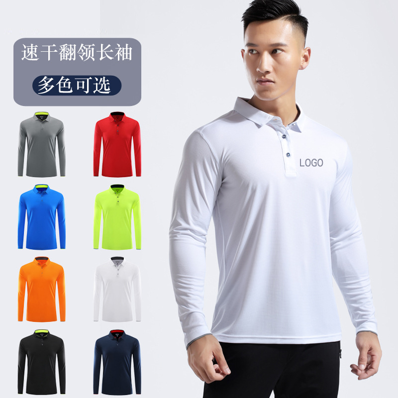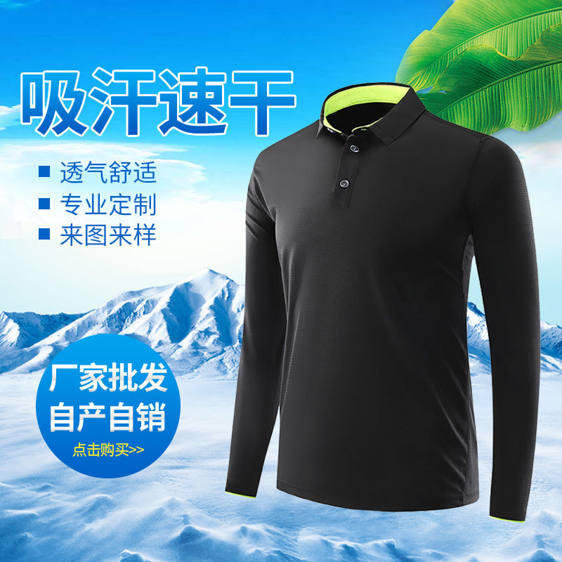 Autumn Winter Long Sleeve Flap Collar Sports Speed Dry Polo Custom Work Clothes Activity Group Build T-shirt Printed Embroidery Logo