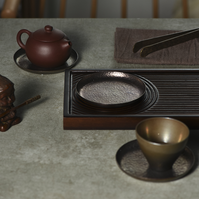 Handmade copper tea cup holder with hammer pattern, creative non-slip heat insulation tea mat, Kung Fu tea tray coaster, tea ceremony spare parts