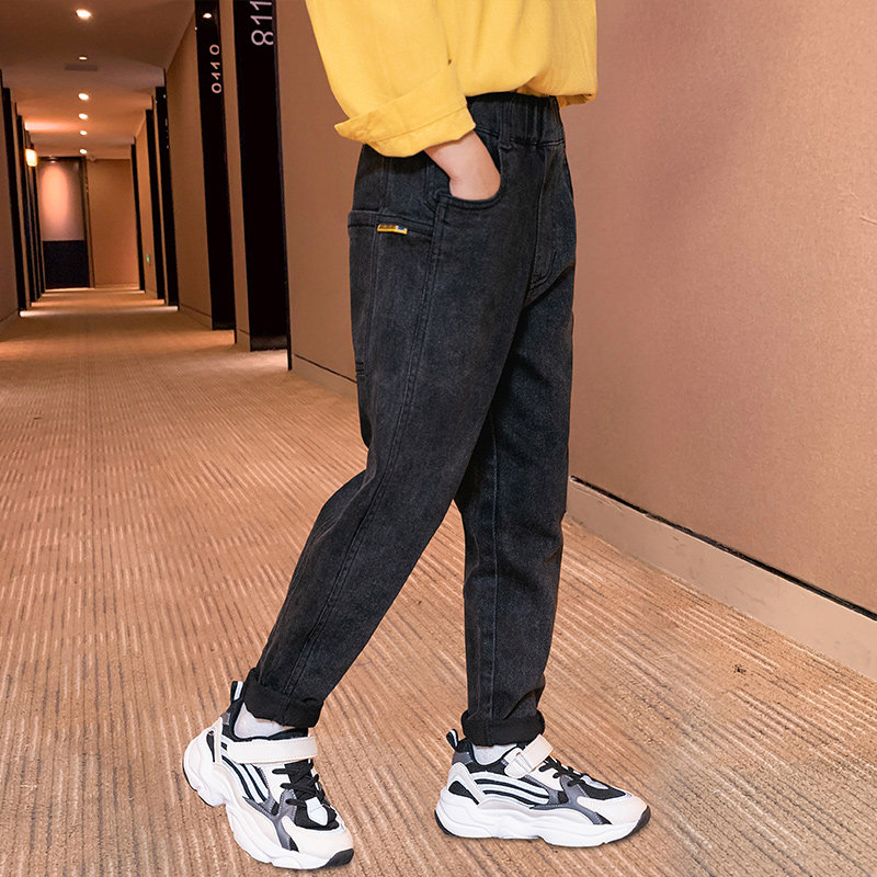 Boys plus velvet jeans winter wear 2021 new children's integrated fleece pants in the big boy plus thick autumn winter slacks