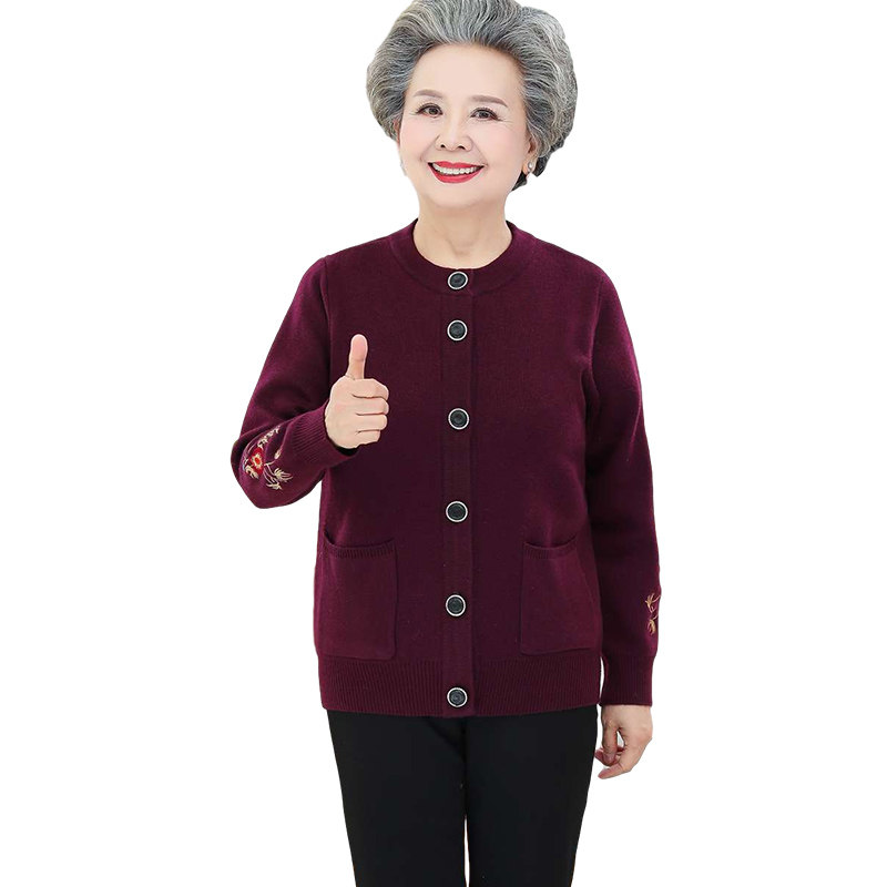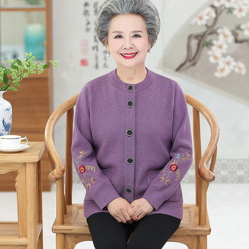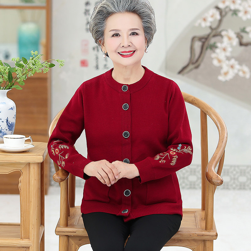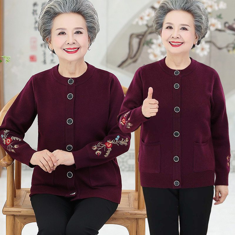 Grandma's knitted cardigan 60-year-old 70-year-old mother autumn and winter jacket loose large size jacket old man clothes