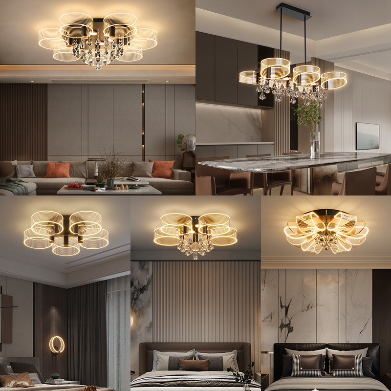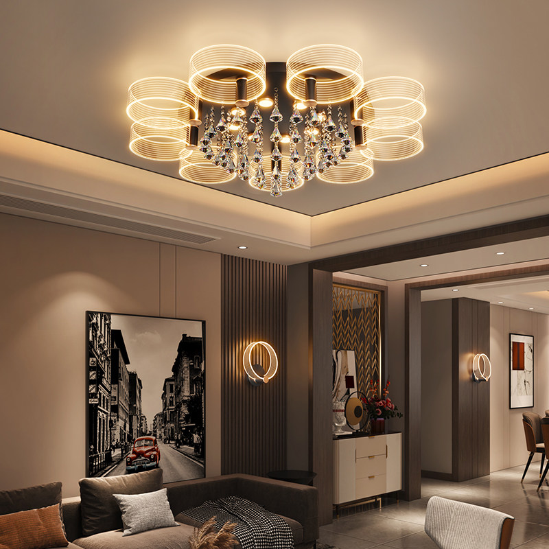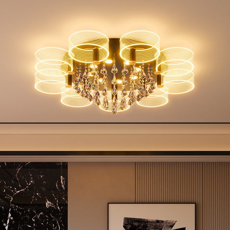 Living room lights 2021 new modern light luxury simple headlights atmospheric round crystal top lights bedroom lights ceiling lights