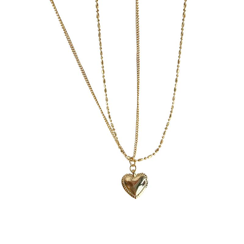 For the evening s925 silver double layer of love necklace woman lock bone chain Japan-ROK brief Peach Heart-shaped Delicate Chocker Necklace