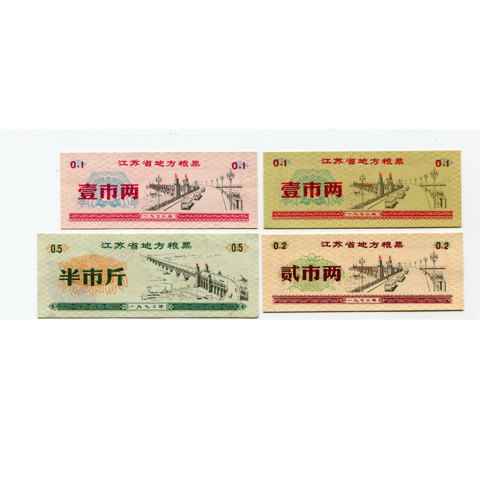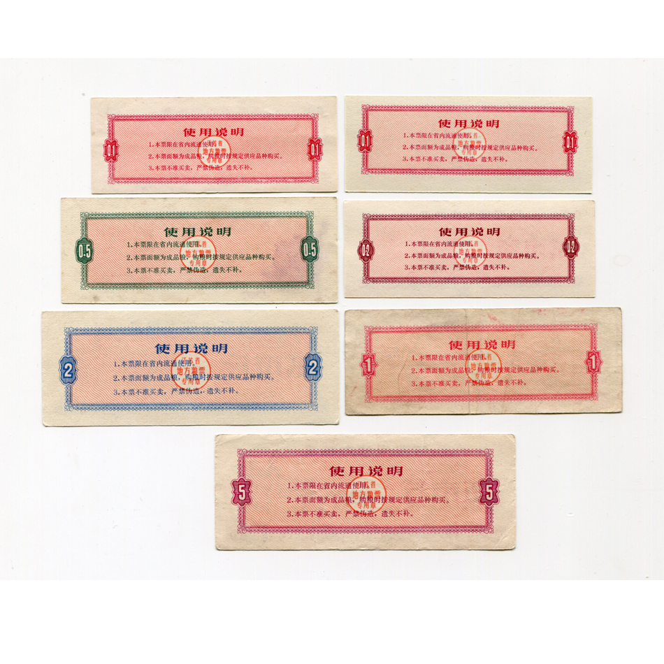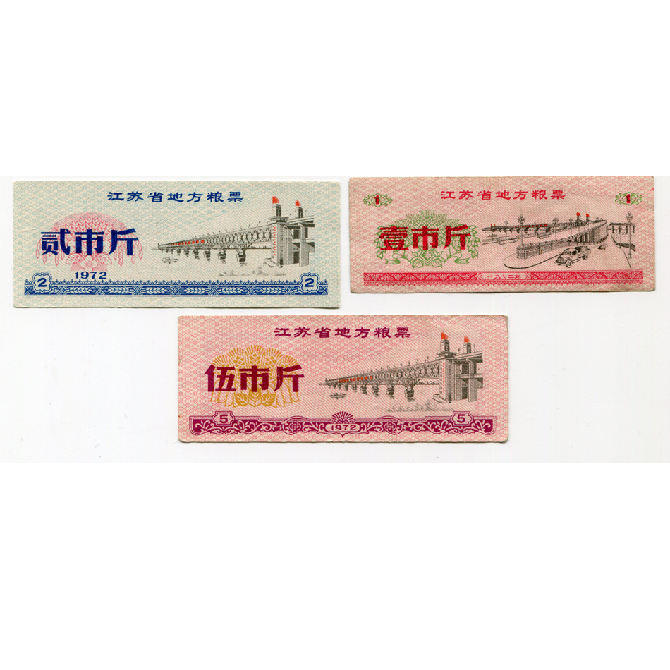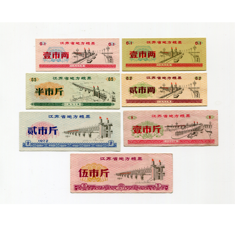 (fidelity) 1972 Jiangsu Province grain ticket full set 7 pieces 3 new 4 Old original ancient play numismatic cloth tickets