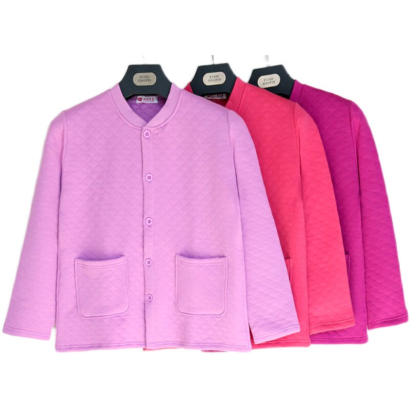 Female mid-aged three layers of pure cotton warm blouse for old man clip cotton cardiovert for a large size with a large size and a large size and a bottom and autumn clothes