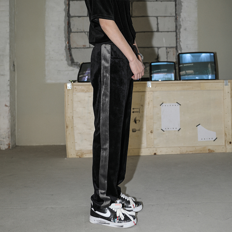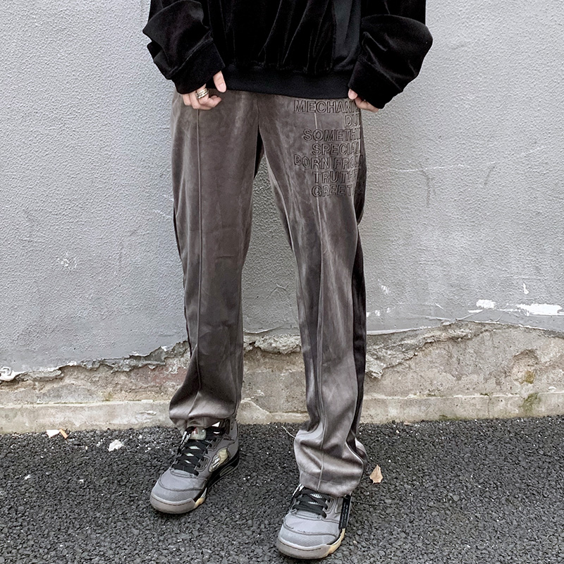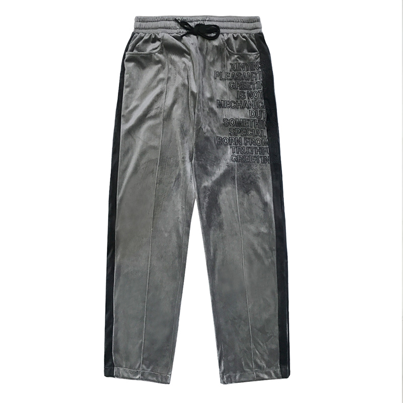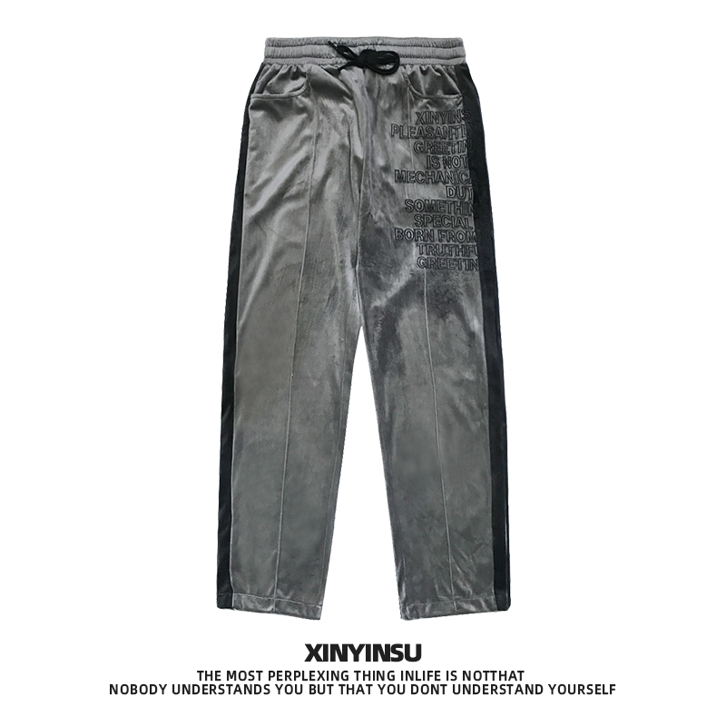 XINYINSU New Factor Tide Brand Spring and Autumn Embroidery Stitching Velvet Pants Couple Trend Casual Pants Winter Country Tide Pants