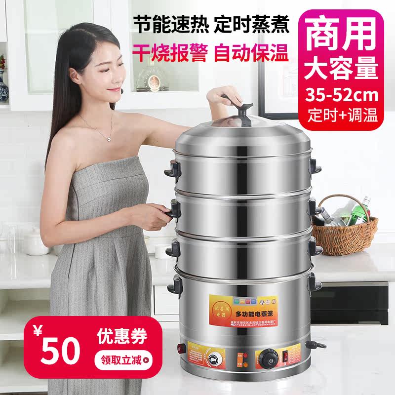 Electric steamer multi-functional household three-layer stainless steel commercial electric steamer large-capacity steaming bag steamed vegetables plug-in electric steamer