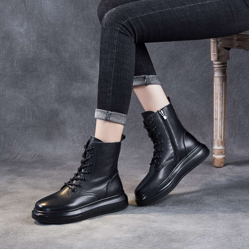 Genuine leather Martin boots women's British style 2021 autumn new round toe versatile tide ins soft leather flat heel platform boots