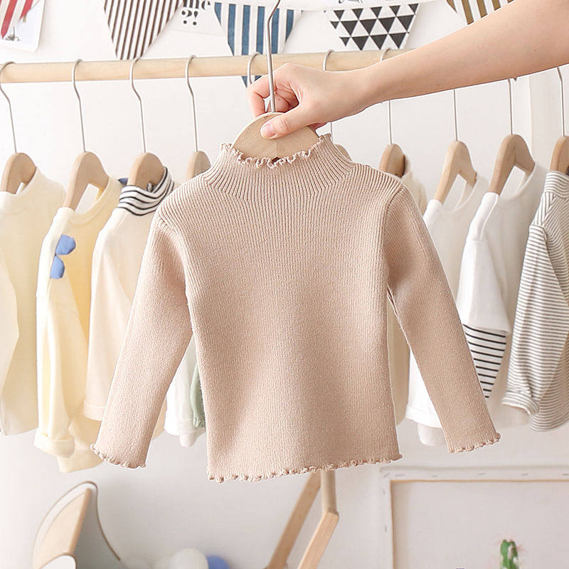 Infant baby bottoming shirt spring and autumn thin semi-high collar autumn and winter girls bottoming shirt plus velvet thickening 1 year old girl sweater 3
