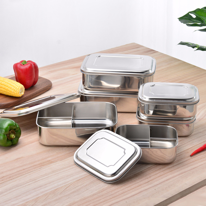304 stainless steel lunch box Meal Kit Large Capacity Rectangular Fors Lunch Box Students Canteen Steamed Rice Box