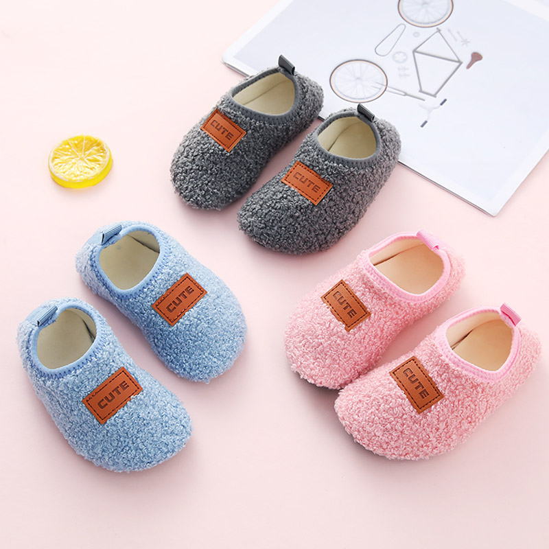 Winter children's floor socks overshoes plus velvet thickened men's and women's baby non-slip soft bottom toddler socks shoes indoor early education shoes