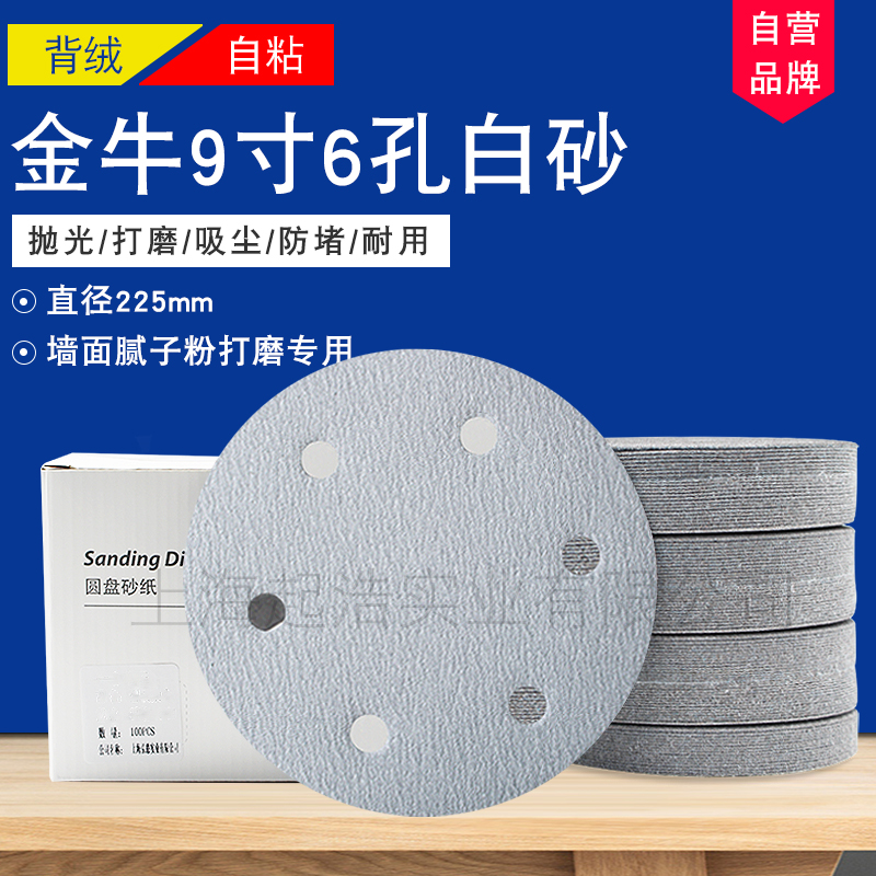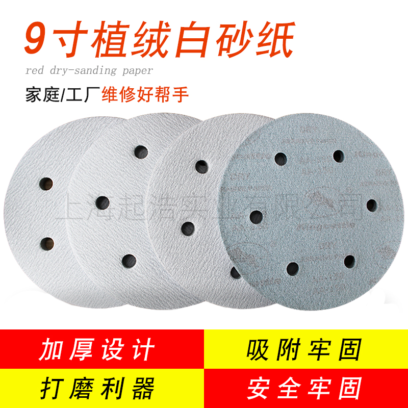 9 inch 6-hole flocking sandpaper white sand self-adhesive polishing round sandpaper wall surface batch grinding machine sandpaper
