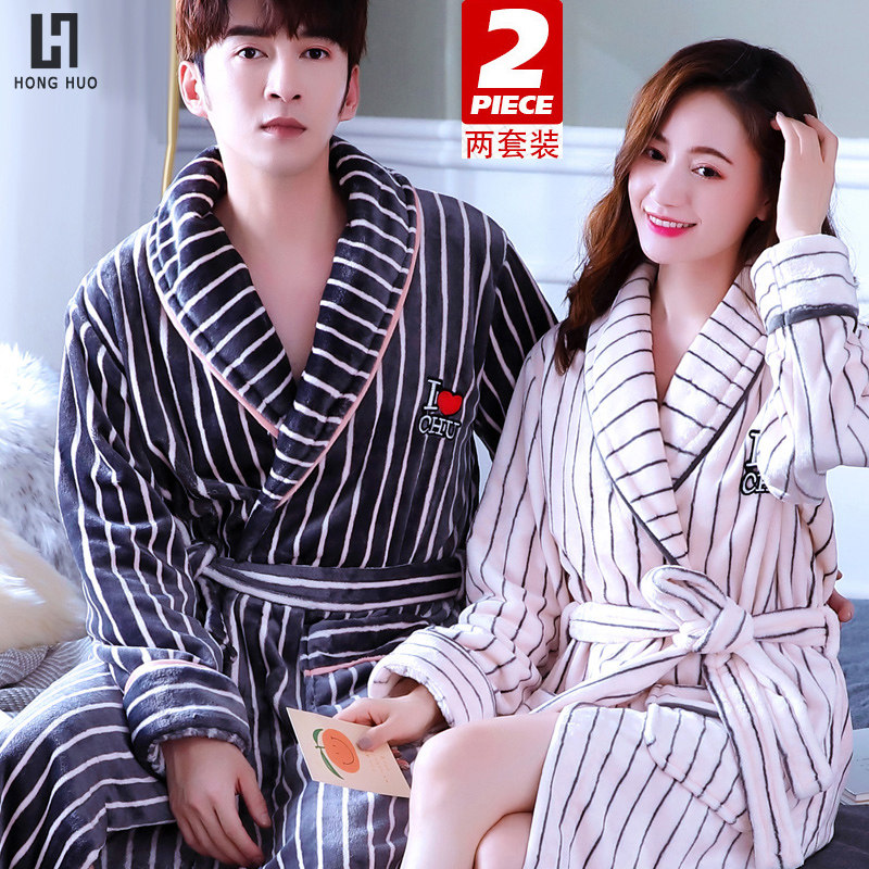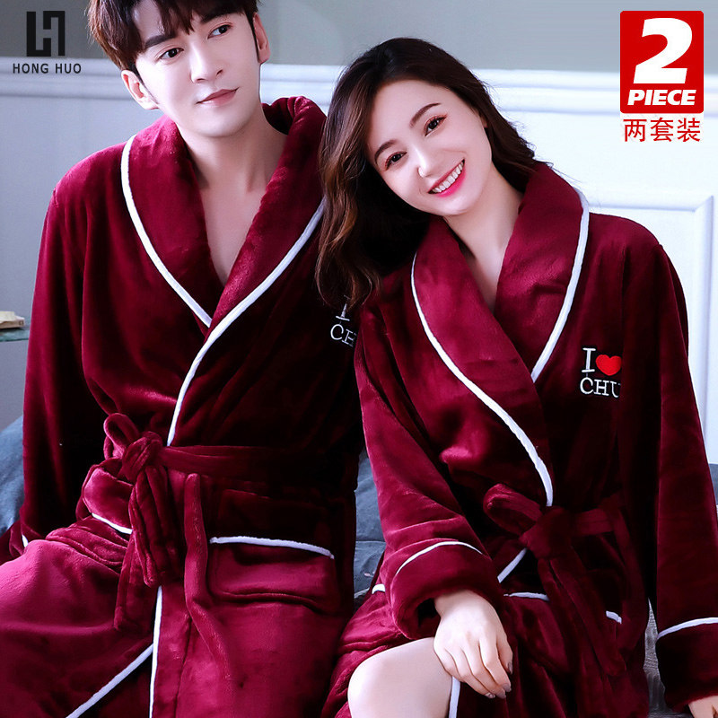 Sleepwear lovers bathrobes pair of autumn and winter models with velvet thickened lengthened sexy sleepwear women's winter men's coral suede suit