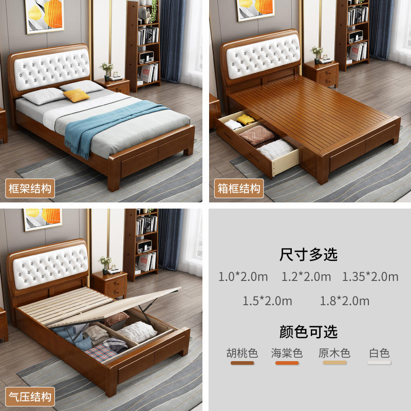 Solid wood single bed modern simple 1 2m soft pack bed 1 35m soft back 1m small apartment storage storage bed - Taobao