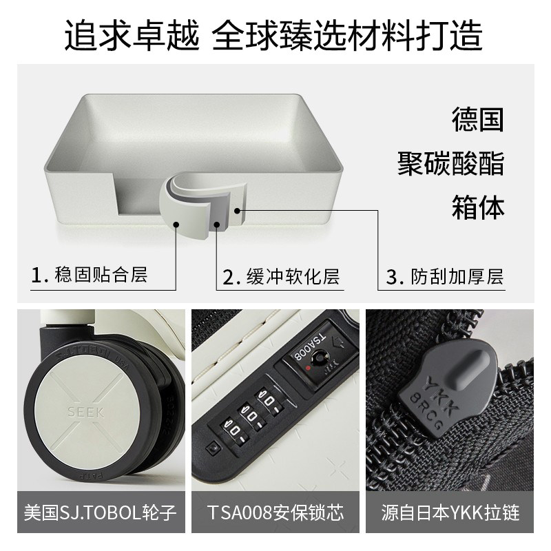 Italian original SEEK suitcase female niche design high face value den case 20 inch mute pull-in suitcase